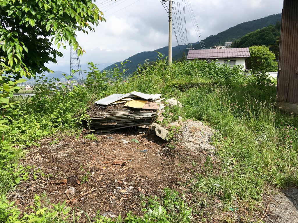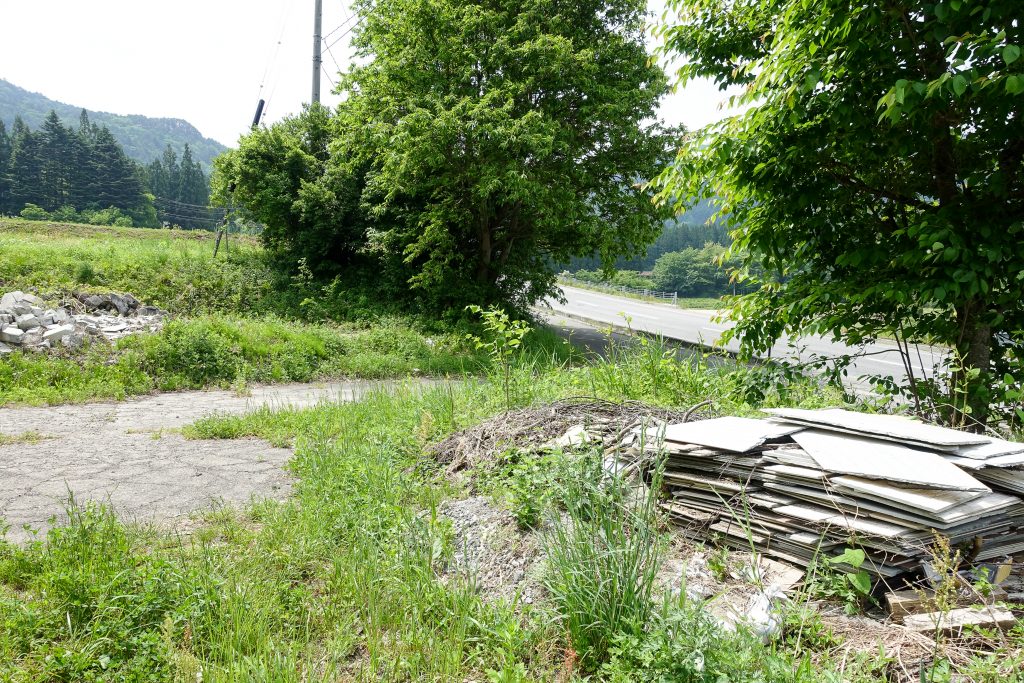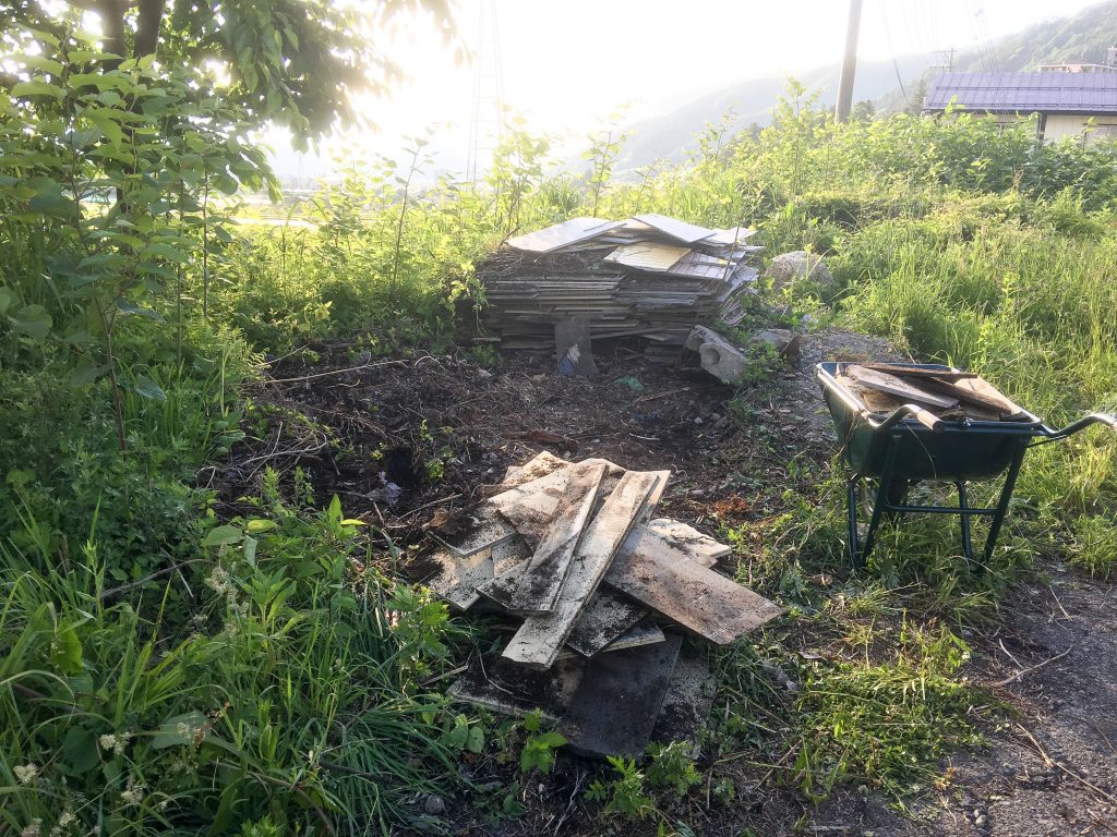 直売所にする倉庫小屋の周りには、建物を解体したときの廃材らしきものなどが山積みとなっている。