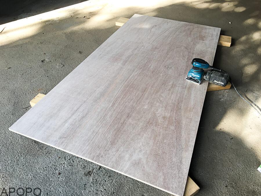 1、まずは塗装を行う表面部分を平にして、ゴミを除去する。今回はベニヤ板に塗装します。