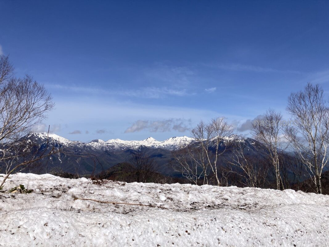 残雪が残る「飯縄山」の眺望は素晴らしかった
