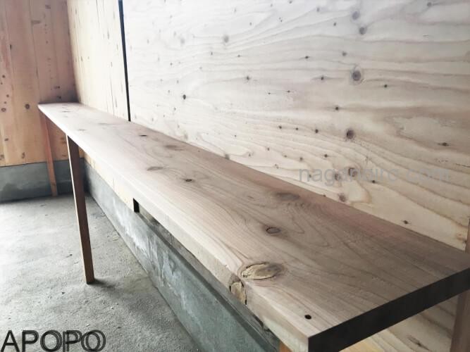りんご直売所にチラシなどを置いたり、試食のりんごを食べてもらう棚(テーブル)を作ることにしました。簡単に作るため、棚の足は前面だけにし、壁板側は角材を固定し... -