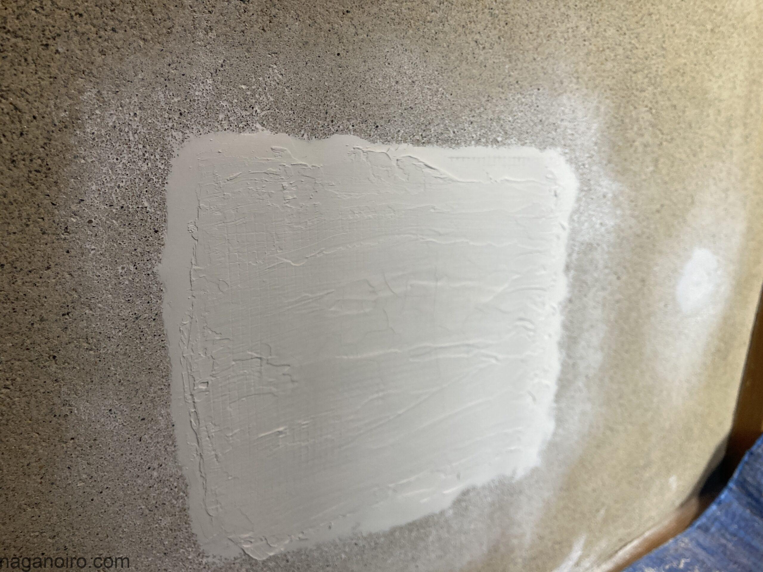 壁補修用パテで埋めればいいだろうと思っていたら、穴が大きすぎてパテを保持できず、落ちたり垂れたり。。。
