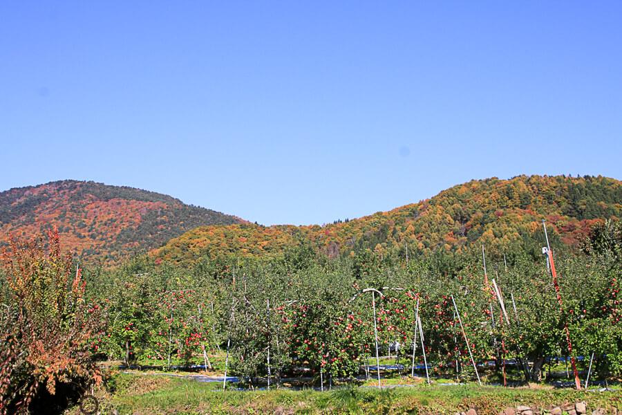 実りの秋を迎えたこの時期は、畑からの紅葉を楽しみながらの散歩がおすすめ。